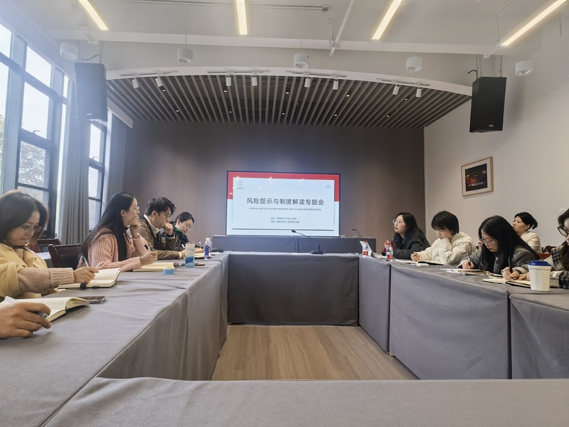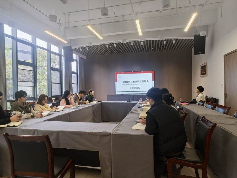 现场互动环节气氛热烈,参会员工结合当前经办项目及过往工作中遇到的风险疑点、制度理解难点等问题踊跃提问。风控合规部、计划财务部负责人及法律顾问逐一进行分析解答,通过研讨厘清了各类业务的认定标准和操作流程。此外,会议还组织学习了教咨公司现行制度,并围绕下一阶段制度体系优化展开了讨论。