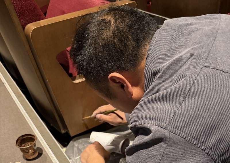 场馆设施完好度是观演品质的重要基础。在常态化巡检中,工作人员发现部分座椅木饰面因长期使用、环境温湿度变化等因素,出现老化、破损、色泽不均等情况,既影响场馆整体美观,也降低了观众就座舒适度。对此,浙音演艺快速响应、立即部署,启动专项修缮工作,明确修缮标准、细化施工流程、严控工期节点,高效推进全流程工作,历时一个月顺利完成全部修缮任务。